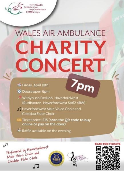 A concert at Withybush Showground Pavilion featuring Haverfordwest Male Voice Choir and the Cleddau Flute Choir.