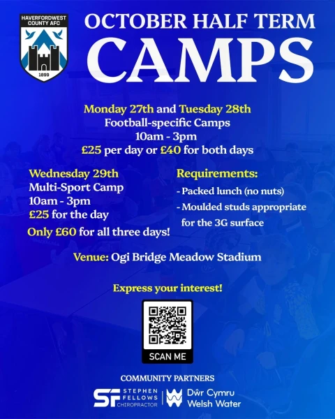 Requirements: Own packed lunch and moulded studs for 3G surface