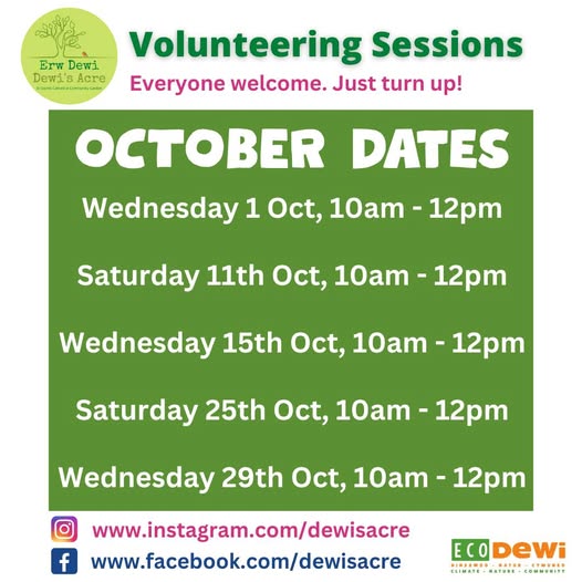 Our upcoming volunteering days for October. Everyone is welcome. Why not pop down and see what it's all about. Got questions? Email: [email protected]